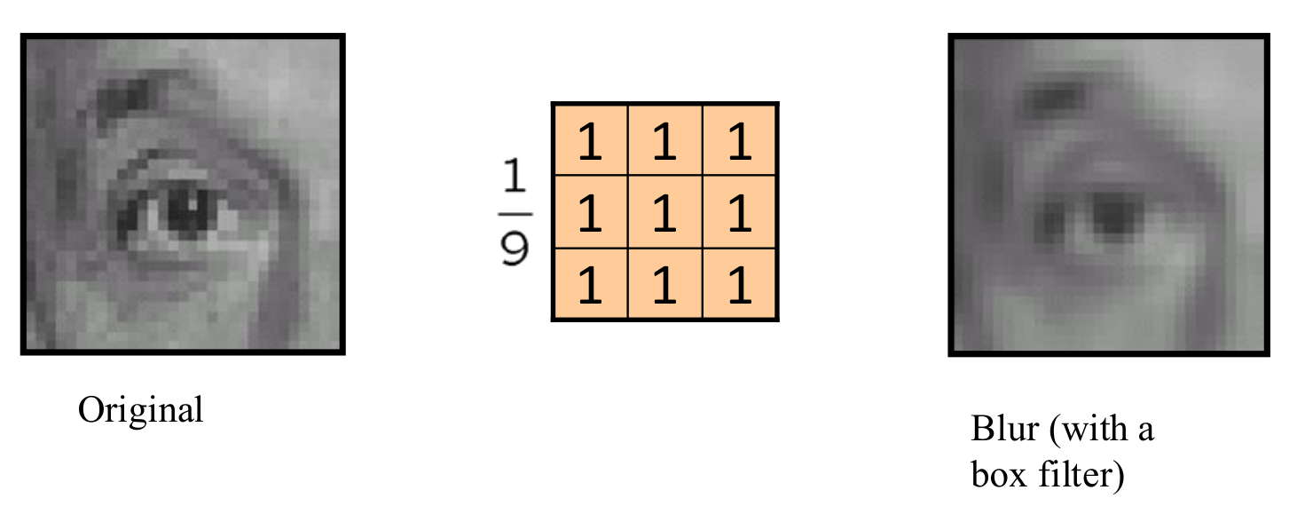 - Blur (Box Filter): A kernel of all 1s, normalized by the number of elements (e.g., 1/9 for a 3x3 kernel). This is the moving average filter we started with. It smooths the image and reduces noise.