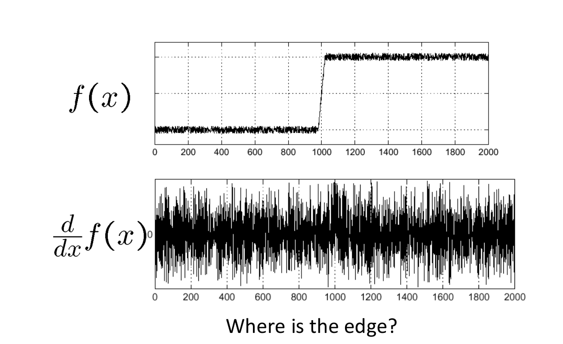 A major problem is that differentiation is extremely sensitive to noise. A small, random fluctuation in a noisy image can create a very large derivative, swamping the true signal from the edges.