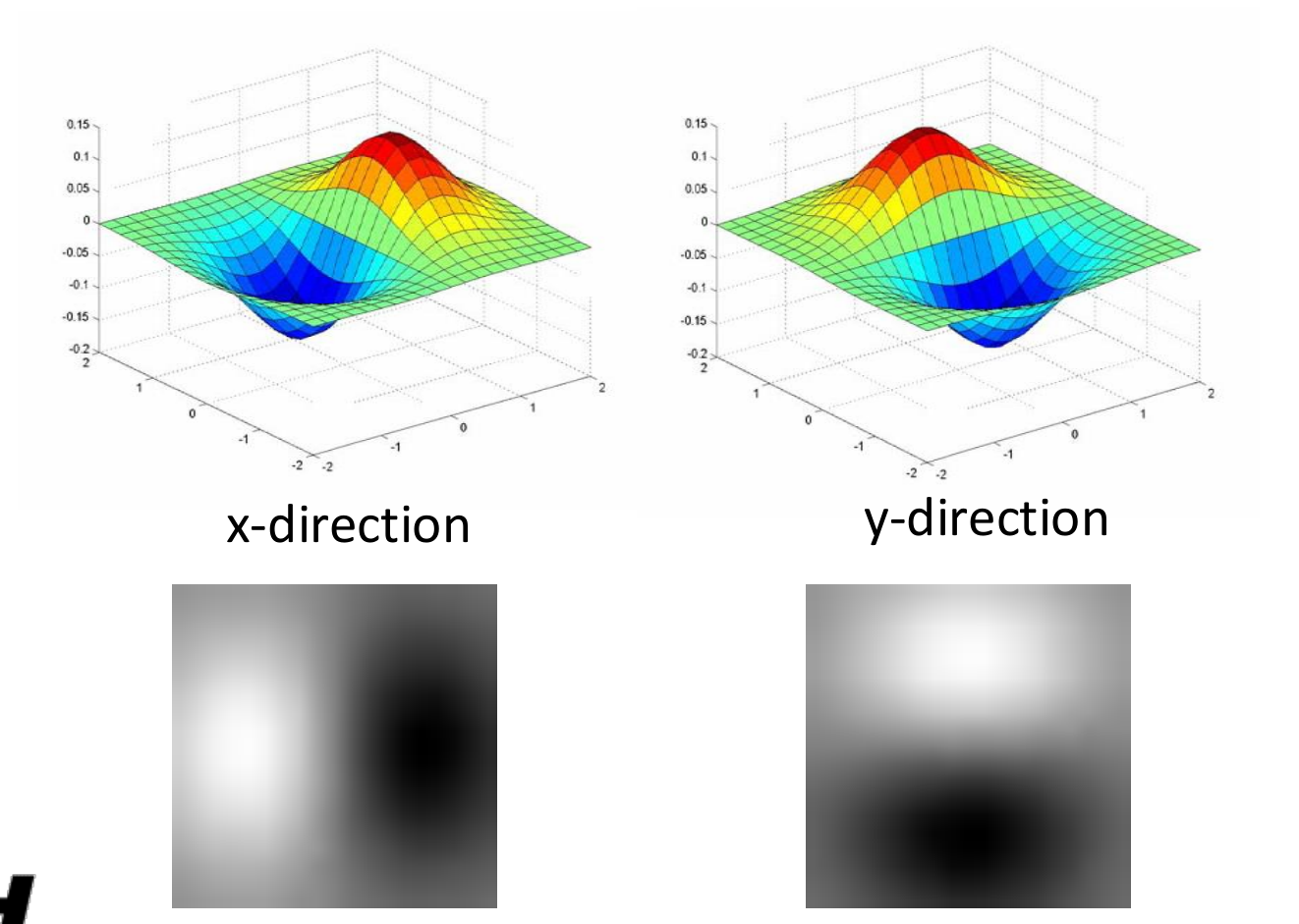 This means that smoothing with a filter and then differentiating is identical to convolving the image with the derivative of the filter . We can pre-compute the derivative of our Gaussian kernel to create a Derivative of Gaussian (DoG) filter. Applying this single filter to the image accomplishes both smoothing and differentiation in one efficient step, giving us a robust way to find edges even in the presence of noise.