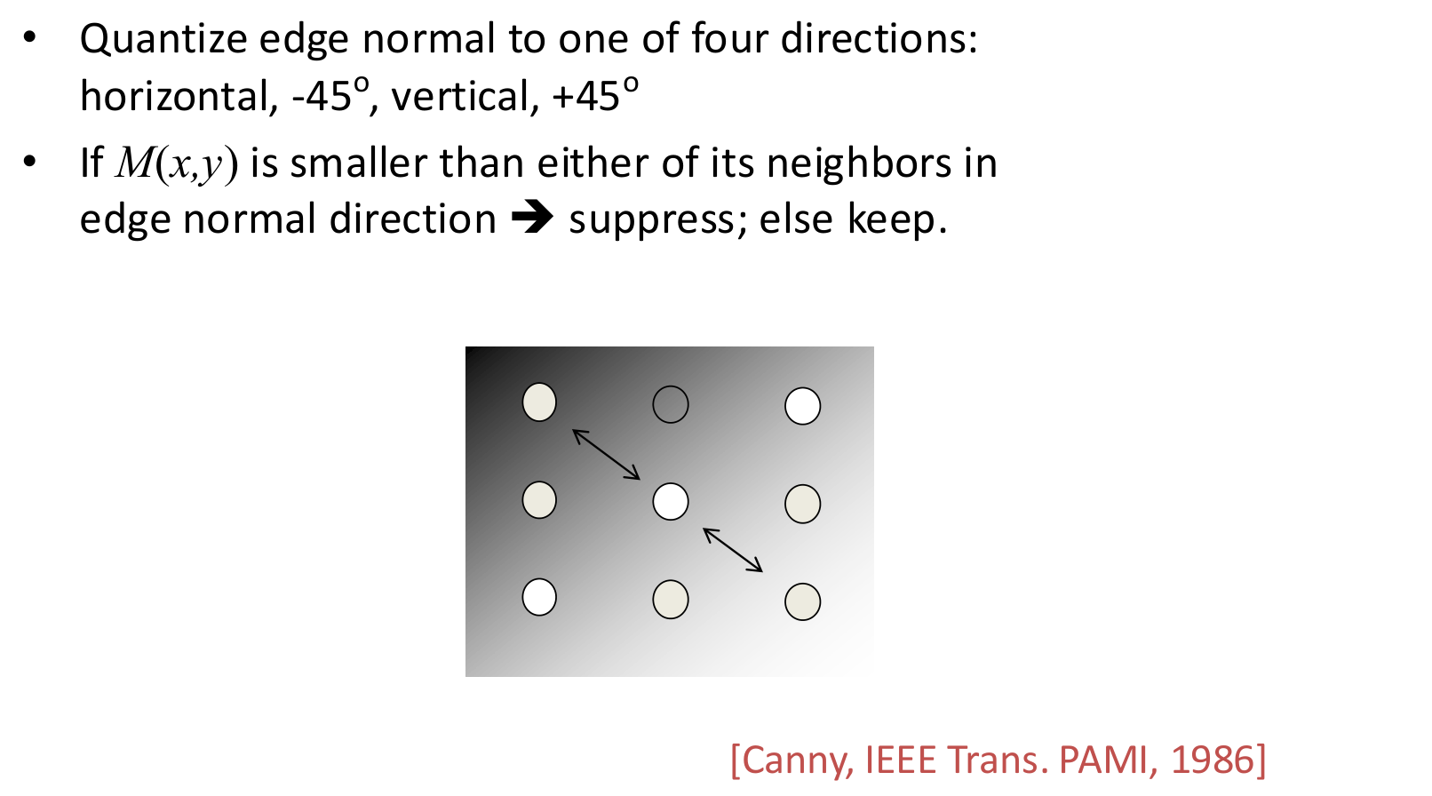 - Direction: . This vector points in the direction of the most rapid intensity increase, perpendicular to the edge itself.