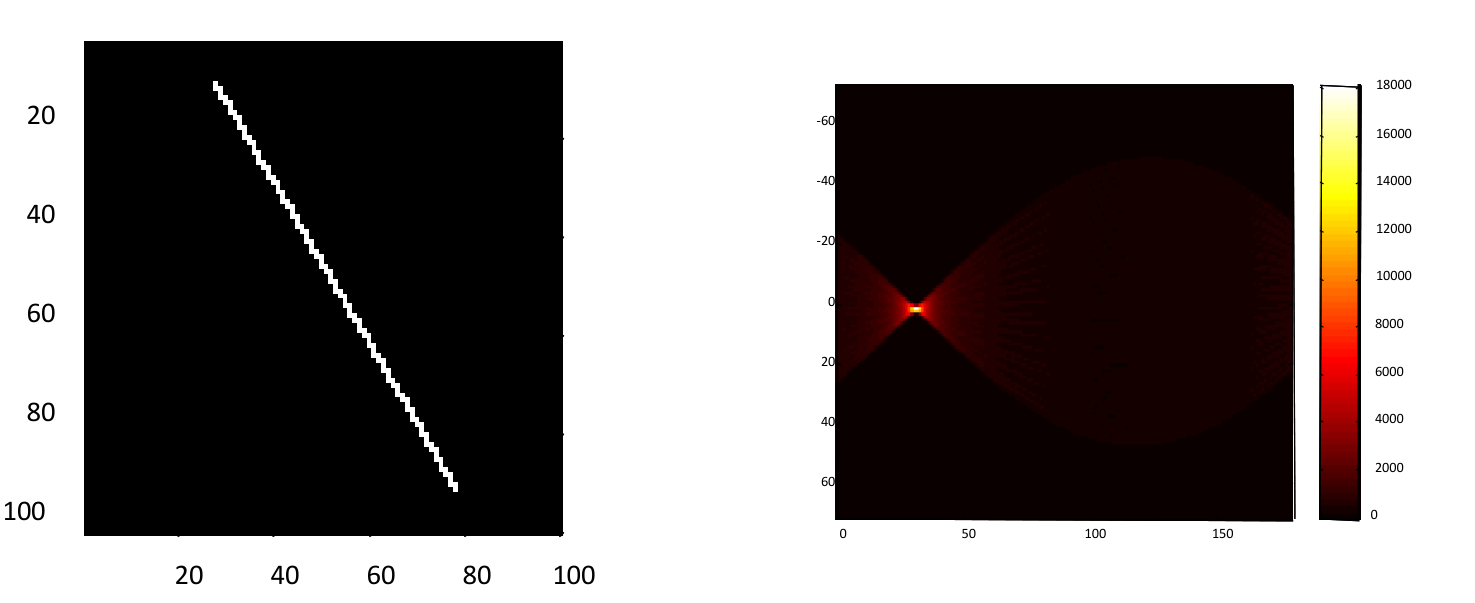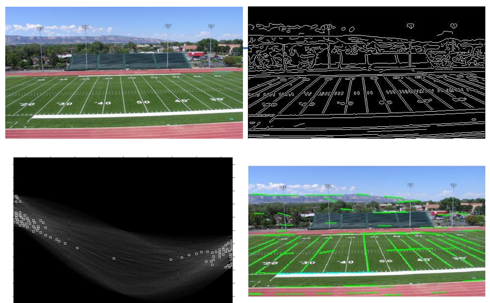 - Find the cells in the accumulator with the most votes. These peaks correspond to the parameters of the most prominent lines in the image.