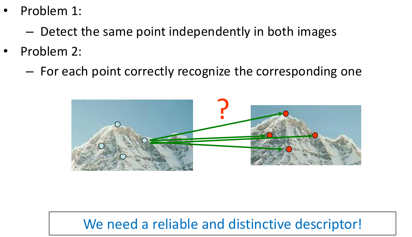 - Where are the interesting, repeatable regions? (Detection)