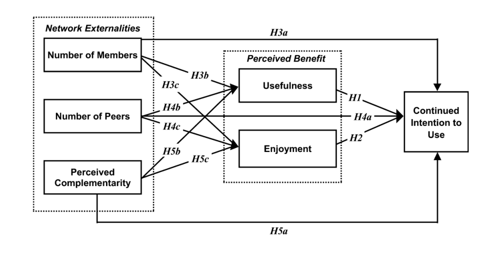 A study by Lin & Lu (2011) tested this by hypothesizing that a user’s number of peers positively affects a service’s perceived usefulness, which in turn drives continued use. Their statistical model is a direct operationalization of this theory.