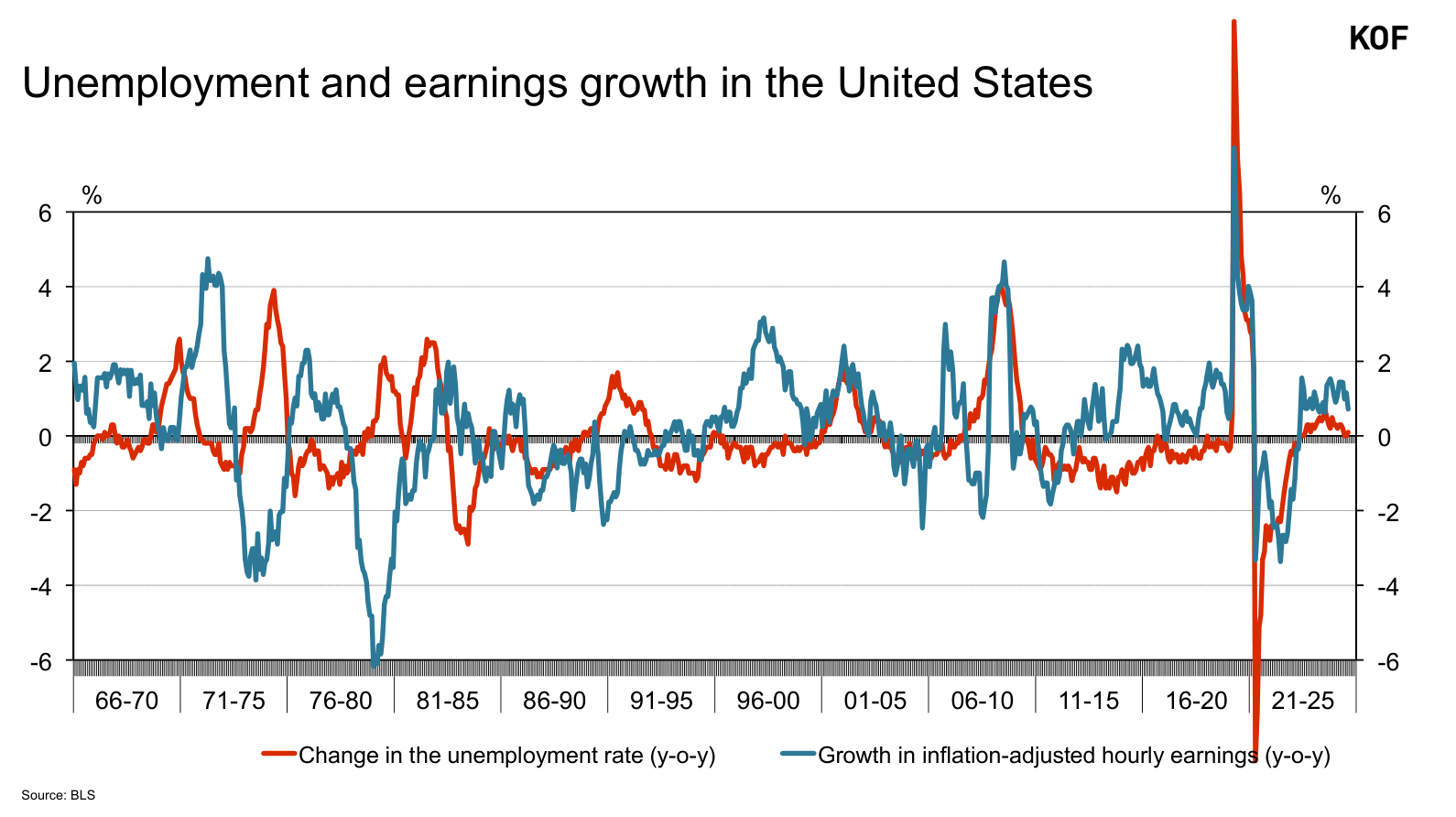 Economically, a clear inverse relationship exists between unemployment changes and real wage growth. When unemployment falls, real wages tend to rise.
