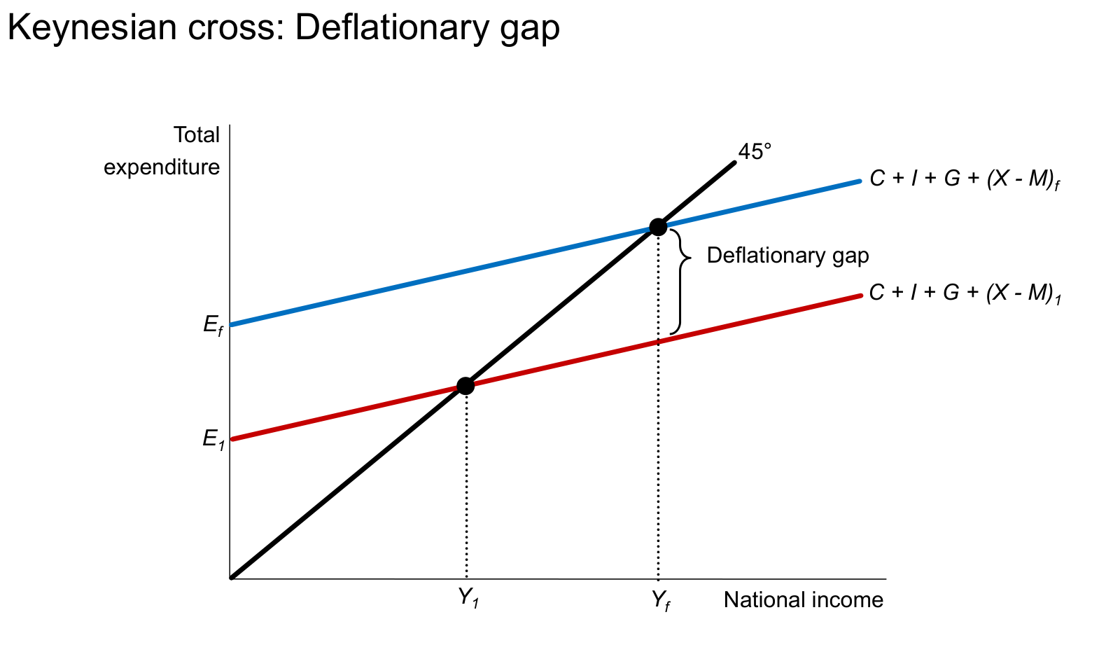 Equilibrium: Where Planned Expenditure = Actual Output. Graphically, where the Expenditure Function crosses the 45-degree line.