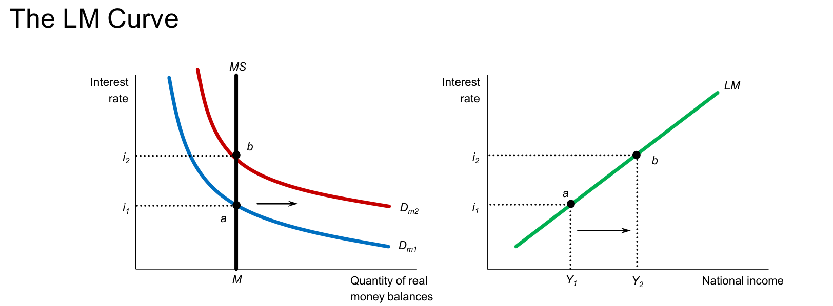 - Derivation: Higher Income () More transactions Higher Money Demand. With fixed Money Supply, the “price” of money () must rise to convince people to hold less cash.