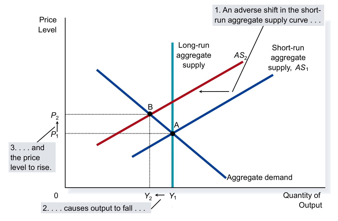 - Shock: Costs rise. SRAS shifts Left ().
